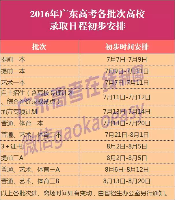 日前,广东省招委会公布了《关于做好广东省2016年普通高校招生工作的通知》。2016年广东高考时间安排不变,仍然为6月7日-8日,录取开始时间为7月7日。