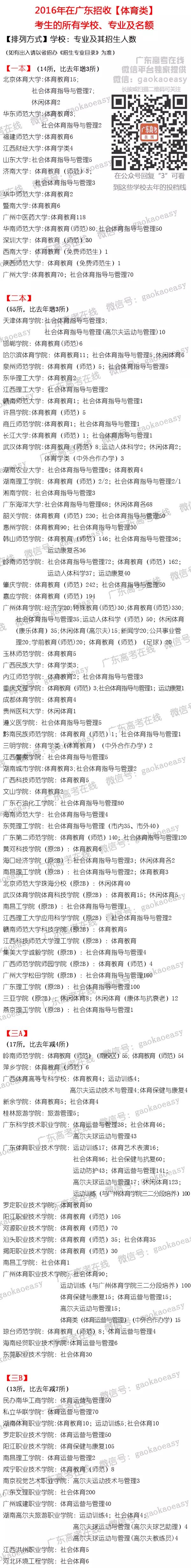 独家!招生专业目录抢鲜看!2016年在广东招体育考生、音乐统考类考生(不需校考)的所有学校、专业和招生人数全汇总