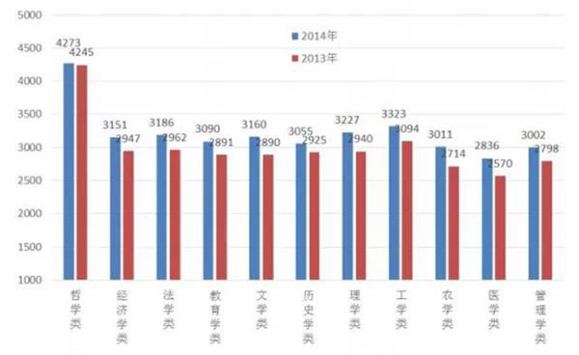 2013年-2014年本科毕业生各学科平均就业薪酬