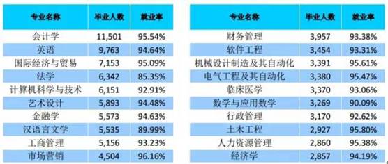 从专业看,2015年本科毕业生涵盖了271个专业,其中人数最多的专业是会计学,有12959 人;其次是英语,有12201人;第三是国际经济与贸易,有8406人。