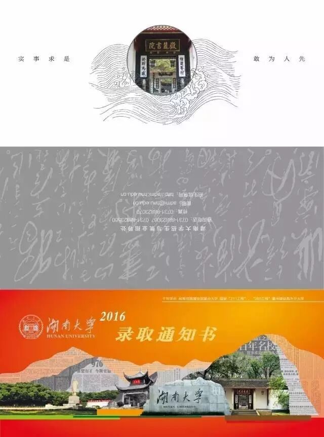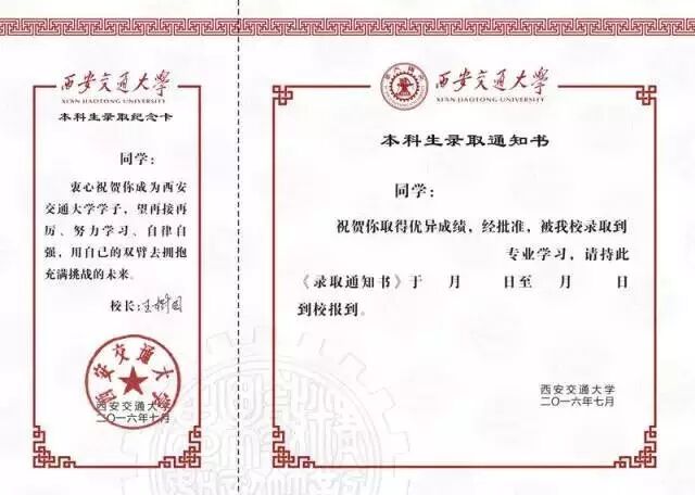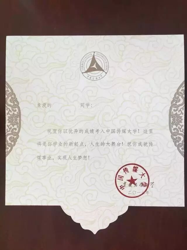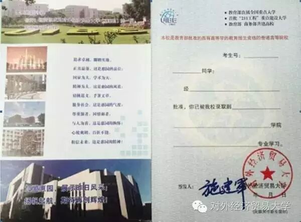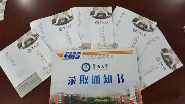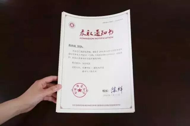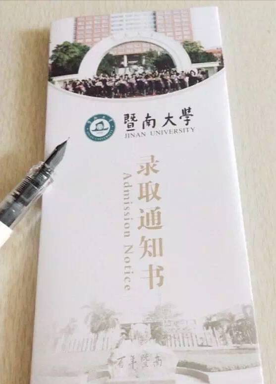 省内部分大学 中山大学今年的录取通知书采用传统纹样作为点缀,融合中山大学的特色标志,简约典雅,端庄大气。素雅的设计背后其实有着许多“小心思”:百年学府的历史底蕴、孕育了中大自由独立气质的岭南之风,都蕴藏在一个个小元素中,组成了这一纸满满心意。这封精心准备、独具特色的通知书,带着祝福来到学子们的手中,祝贺他们在高考中金榜题名,也开启了他们的大学求学之路。 今年华南理工大学的录取通知书的大信封是个新生大礼包,里面有入学指南,供考生详细了解报道流程;有学生组织宣传册,介绍各大学生组织;有本科海外学习项目介绍,方便想要出国留学的小伙伴提早做好准备;还有银行卡、助学政策说明、安全提示等,新同学们要仔细了解清楚哦~ 暨南大学的录取通知书设计简洁、精致、淡雅,以其小清新的文艺范征服了一大批网友的心。今年是暨南大学110年校庆,为这份录取通知书增添了更多的纪念价值。 华农新生录取通知书信封里包含了录取通知书、新生入学指南、银行卡、易班注册指南、高校学生资助政策介绍、医保简介、新生入伍宣传等材料,方便考生顺利办理报到手续,尽快适应校园生活。 华南师范大学录取通知书用石牌校区校门的图片作为封面,彰显了师范大学的大气和沉稳。 广东工业大学录取通知书新颖活泼,充分体现了大学城校区的建筑特色。封面“不一样的广工大,不一样的你”口号更能引起年轻学子共鸣。 今年5月,广外招办举办了录取通知书设计征集活动,征集学生作品43份,经过网上与老师评比选出最佳作品为2016年新生录取通知书样式。封面上包含了学校南北校区的特色风景,内页含有联合国6种官方工作语言的设计元素及新生录取信息。 汕头大学的录取通知书大信封也是个新生大礼包,除了有考生梦寐以求的通知书外,还有致广大高校青年学生的一封信和“住宿意向征集”,是不是考虑得非常全面、贴心? 星海音乐学院的录取通知书封面红底银字,印有校徽、校训,设计虽然简单,但用色和谐,造型大方,具有简约的艺术气质。 据南方科技大学介绍,7月20日已将全部录取通知书寄出。随录取通知书一并邮寄的还有新生入学须知、资助手册、暑期英语网上学习计划等多种资料,方便考生来校后的学习和生活。 吉林大学珠海学院今天重新设计了录取通知书,整理朴素典雅,采用校园标志性建筑图书馆为主题,以传统的折页形式呈现,运用了丰富的绘画手法,为每一位吉珠学子勾勒美好未来的蓝图。 省外部分大学 随录取通知书一起寄出的还有校长邱勇为新生准备的特殊礼物《瓦尔登湖》。今年是邱勇第二次向新生赠书。之所以选择《瓦尔登湖》,邱勇在致新生的信中解释称:“《瓦尔登湖》是一本使人安静的书。作者亨利·戴维·梭罗在向读者展示瓦尔登湖自然美景的同时,也展示了一种物质上简朴至极、精神上丰盈充实的生活状态。希望你们在阅读中能够体会到作者深入思考与重塑自我的心路历程,感受到宁静的巨大力量,寻找到自己心中的瓦尔登湖。” 北京林业大学今年的录取通知书将校训“知山知水,树木树人”与中国古典园林做了结合。封套以录取的“录”字做框架变形,模拟山径,水路贯穿整个版面,以“山、水、木、人”为主要符号,配合花窗、拱桥等古典园林元素点缀其中。同时,以花窗为眼,内裱手工粘贴的真实植物叶脉,隐约透出内页考生姓名。 天津大学录取通知书由校长授权签发,融入天津大学的校徽LOGO、学校标志性建筑“北洋大学堂纪念亭”等元素,突出学校深厚的历史底蕴和浓厚的人文气息,新生报到后可留作纪念。 录取通知书正面以“紫气东来门”为背景,镶嵌“交通大学”四个字的牌匾熠熠生辉,大门后方是以上海交大创始人盛宣怀命名的“宣怀大道”,象征着巍巍百年学府张臂拥抱来自五湖四海的莘莘学子。在录取通知书的反面,不仅有校训,校徽,还赫然写着“千里之行,始于足下,交通大学将成为你放飞梦想、谱写绚烂华章的地方”。 在形式上,本次设计突破一贯的思维,不再是传统意义上简单地左右或者上下对折。用红色皮绳将两张折页合二为一,外页使用艺术纸张,工艺上对“2016录取通知书”做凹处理,图形处理上,将"同济”首字母“T”“J”巧妙地组合,也增添了设计的延续和创新,内页使用环保纸张。在整个设计中,不但形式创新,且具环保理念,使得录取通知书不仅活泼新颖,还不失端庄精致。 今年,电子科大将迎来60岁生日,2016级成电人将非常幸运地收到60周年校庆典藏版录取通知书。 北语录取通知书正面底纹为撒金纸,背面大红色,金色的“录取通知书”几个字为明清科举放榜字体改造而来。北语录取通知书还专门增加封套,印有北语招生吉祥物宝贝鱼,并有国子监建筑图像,寓意鲤鱼跳龙门。 对外经济贸易大学录取通知书纸张为贸大专用水印纸,纸张水印图案为老一辈革命家陈云同志手书“对外经济贸易大学”字样,选用色彩为学校主色调——贸大蓝。 通知书封面一选用贸大校门为主图,寓意学子们即将跨入惠园,开始人生的大学生涯,背景为惠园白鸽;封面二选用学校图书馆为主图,体现惠园对知识的尊重,经典诚信主楼、宁远主教学楼、学生高级公寓以及校园长廊环绕四周;封面三背景选用中国传统吉祥线化纹样,庄重大气;封面四印有校训及惠园全景。 上海外国语大学