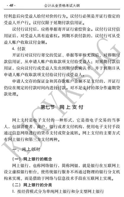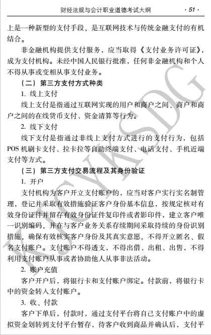 小k发现,会计基础考试大纲、珠算考试大纲、会计电算化考试大纲均没明显变化。不过,财经法规与会计职业道德考试大纲有新增内容,增加部分是第二章 计算法律制度 第七节 网上支付(原来只有六节)