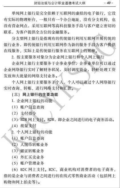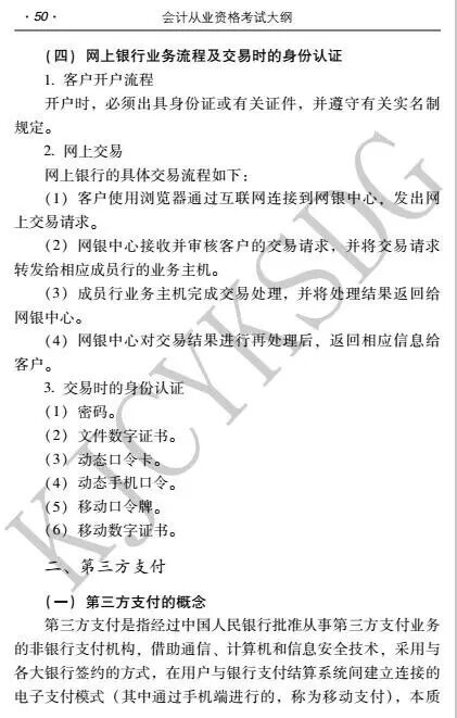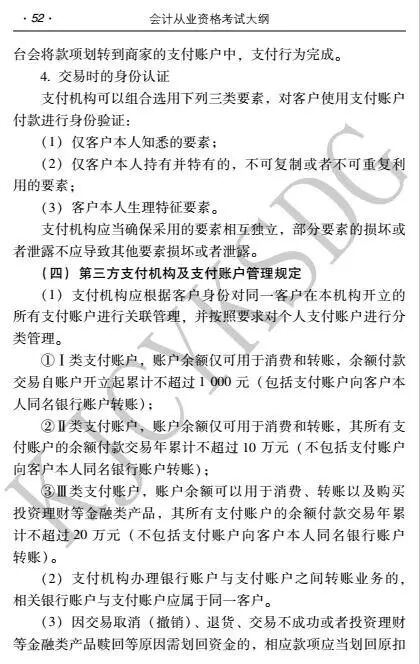 2017年会计从业资格考试新大纲改版,那么,对比起旧的大纲,新大纲变化在哪里呢? 小k发现,会计基础考试大纲、珠算考试大纲、会计电算化考试大纲均没明显变化。不过,财经法规与会计职业道德考试大纲有新增内容,增加部分是第二章 计算法律制度 第七节 网上支付(原来只有六节) 详细内容如下: