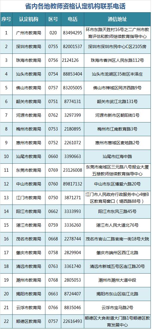 想当老师的小伙伴看过来!无论您是一名怀着教师梦的社会人员,还是一名应届毕业生,如果想申请广东2017年春季中小学(含中等职业学校)和幼儿园教师资格认定 ,那一定不能错过今天我们送上的这份最详细安排。 哪些人群可参与认定? 2014年9月1日前取得自学考试教育学和心理学课程合格证书的人员(含2017年我省普通高等学校全日制应届毕业生)。 2016年5月31日以前入学的全日制幼儿师范学校师范毕业生、全日制普通高等学校师范毕业生(含2017年全日制应届师范毕业生)和全日制教育硕(博)士,直接申请认定与所学专业、学段相对应教师资格。 持教育部考试中心颁发的《中小学和幼儿园教师资格考试合格证明》且在有效期内的人员(在校生仅为普通高等学校全日制应届毕业生)。 申请认定需要哪些条件? 申请认定教师资格的人员,应符合《教师资格条例》规定的资格认定条件,未达到国家法定退休年龄,具有广东户籍或人事(劳动)关系在广东,或为广东省各普通高等学校全日制应届毕业生。 思想品德条件 拥护中国共产党的领导,热爱社会主义祖国,坚持党的基本路线,有良好的政治素质和道德品质,遵守宪法和法律,热爱教育事业,履行《教师法》规定的义务,遵守教师职业道德。 学历条件 申请认定类型 学历条件 幼儿园教师资格 幼儿师范学校全日制毕业及以上学历 小学教师资格 中等师范学校毕业及以上学历 初级中学教师资格 高等师范专科学校或者其他大学专科毕业及以上学历 高级中学教师资格 高等师范院校本科或其他大学本科毕业及以上学历 中等职业学校教师资格(包括中等专业学校、技工学校、职业高级中学文化课、专业课教师资格) 高等师范院校本科或者其他大学本科毕业及以上学历 中等职业学校实习指导教师资格(包括中等专业学校、技工学校、职业高级中学实习指导教师资格) 中等职业学校毕业及以上学历,同时应具有初级及以上专业技术职务或中级以上工人技术等级证书 教育教学能力条件 1.身体条件:具有良好的身体素质和心理素质,无传染性疾病,无精神病史,能适应教育教学工作的需要。按照《广东省教师资格申请人员体格检查标准(2013年修订)》(粤教继函〔2013〕1号),经教师资格认定机构指定的县级以上医院体检合格。 2.普通话水平:按照省教育厅印发的《关于调整中小学教师资格认定普通话测试标准的通知》(粤教继〔2004〕25号)要求,社会人员以及广州、深圳、珠海三地市区的在编在职教师要求达到二级乙等以上标准;其他地区的在编在职教师认定与教学岗位相应的教师资格,要求达到三级甲等以上标准。 3.2014年9月1日前取得的自学考试教育学和心理学课程合格证书人员申请教师资格,须通过教师资格认定机构组织的教育教学能力测试。 什么时间开始认定工作? 广东省春季教师资格认定分二个阶段。第一阶段受理所有符合认定条件的人员,第二阶段仅受理2017年上半年全国中小学教师资格考试成绩合格的人员。具体时间安排: 第一阶段 1. 网上申报 申请人于3月21日至3月29日,登录“中国教师资格网”(http://www.jszg.edu.cn/)如实填写《教师资格认定申请表》,中国教师资格网每天报名开放时间为7∶00-24∶00。其中: ▲持教育部考试中心颁发的《中小学和幼儿园教师资格考试合格证明》申请人选择“全国统考合格申请人网报入口”。 ▲其他申请人选择“未参加全国统考申请人网报入口”。 2. 受理认定 各级认定机构于3月30日至4月21日,对春季教师资格认定申请人提供的相关认定材料进行审核和网上确认,完成教育教学能力测试,并于 4月30日前完成所有数据审核和生成证书编号。 第二阶段 1. 网上申报 2017年上半年全国中小学教师资格考试成绩合格的申请人于6月20日至6月30日,登录“中国教师资格网”(http://www.jszg.edu.cn/),选择“全国统考合格申请人网报入口”,如实填写《教师资格认定申请表》,中国教师资格网每天报名开放时间为7∶00-24∶00。 2. 受理认定 各级认定机构于7月1日至7月14日,对第二阶段的教师资格认定申请人提供的相关认定材料进行审核和网上确认,并于7月21日前完成所有数据审核和生成证书编号。 需要提供哪些资料? 社会申请人员须在规定的受理期限内,向本人户籍或人事(劳动)关系所在地教师资格认定机构提出申请。 2017年全日制应届师范毕业生由学校统一向学校所在地教师资格认定机构申请认定教师资格。 2017年全日制应届非师范毕业生,可向学校所在地或户籍所在地教师资格认定机构申请认定教师资格。 申请人需提供以下教师资格认定相关材料: 1.《教师资格认定申请表》一式2份; 2. 身份证原件和复印件; 3. 学历证书原件、学历证书复印件和学历鉴定证明(全日制应届毕业生提交学校出具的学业成绩单); 4. 教育行政部门指定的县级以上医院出具的体格检查合格证明; 5. 普通话水平测试等级证书原件和复印件; 6. 思想品德情况鉴定(全日制应届毕业生由学校出具); 7. 师范毕业生提供教育学、心理学和教学实践课程成绩证明。取得自学考试教育学和心理学课程合格证书人员提供合格证原件和复印件。参加全国教师资格考试成绩合格人员提供《中小学和幼儿园教师资格考试合格证明》,考试合格证明由申请人自行登录“中小学教师资格考试网”下载打印; 8. 户口簿原件和复印件或人事(劳动)关系在广东