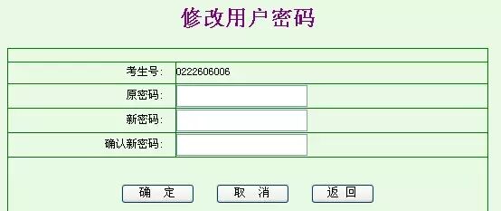 考生可以凭旧密码来修改自己的个人密码。页面如下图所示: