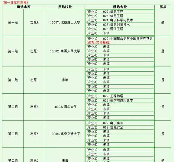 2、查询所报志愿:考生可以浏览其所有批次的详细志愿信息。