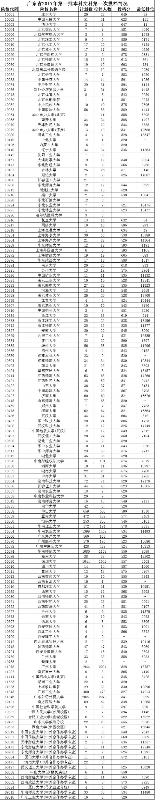 7月12日我省提前二本、一本体育、艺术类等类型录取工作结束,分别录取1672人和6965人,提前批自主招生等院校已投出3392人,择优录取。7月13日晚上,我省第一批本科高校文、理专业录取工作开始,目前第一志愿组投档已完成。今年第一志愿组共投出64801人,其中理科投出51749人,投档率为93%,文科投出13052人,投档率为96%。小编已将广东省2017年第一批本科(文理)第一次投档情况汇总,赶紧往下看~