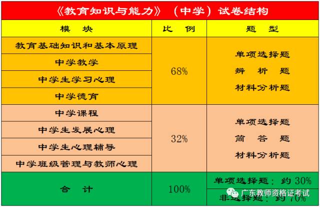 (3)初级中学、高级中学教师资格考试笔试科目共三科:科目一为《综合素质》,科目二为《教育知识与能力》,科目三为《学科知识与教学能力》。