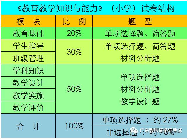 (2)小学教师资格考试笔试科目共两科:科目一为《综合素质》,科目二为《教育教学知识与能力》。