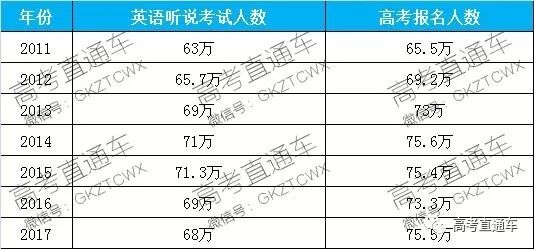 从以上数据可以看到,不是所有报名高考的同学都会参加英语听说考试,从上两年数据看,每年参加英语听说考试的人数在下降,2018年的情况应该也会差不多。竞争的人是真的不少呢!