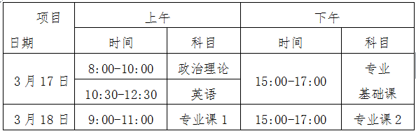 普通高校本科插班生招生考试时间为2018年3月17日(星期六)至18日(星期日)两天,具体安排见下表: