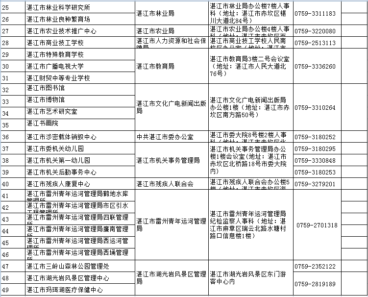 2.2017年湛江市市直事业单位公开招聘报名地点及咨询电话