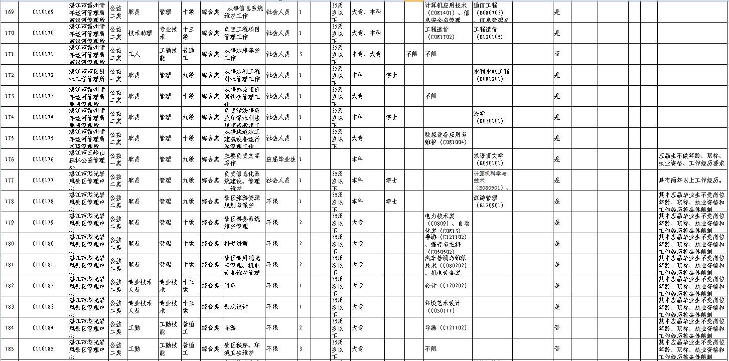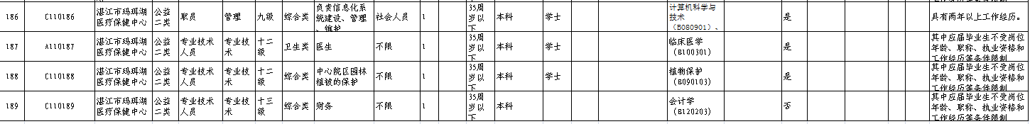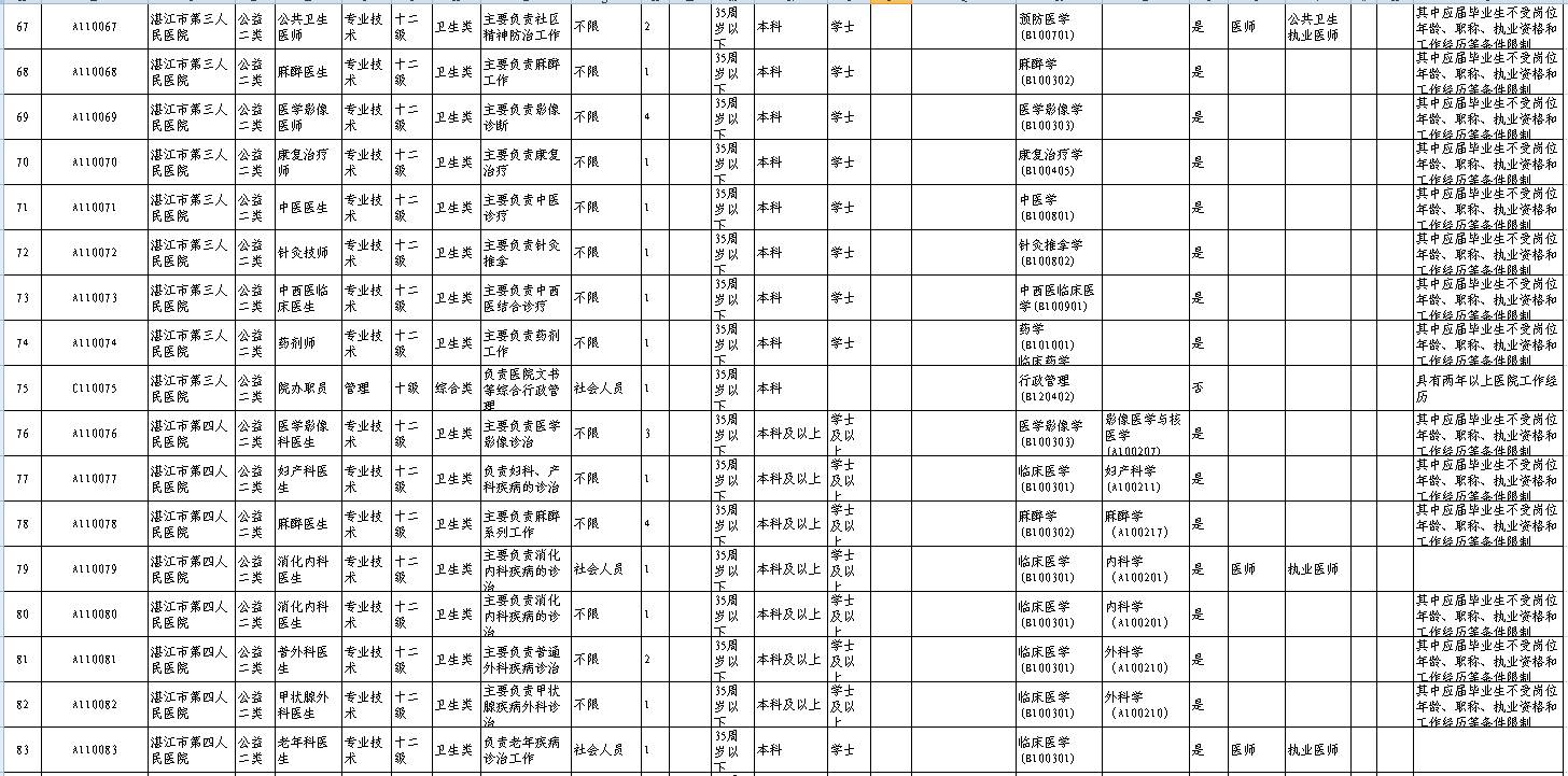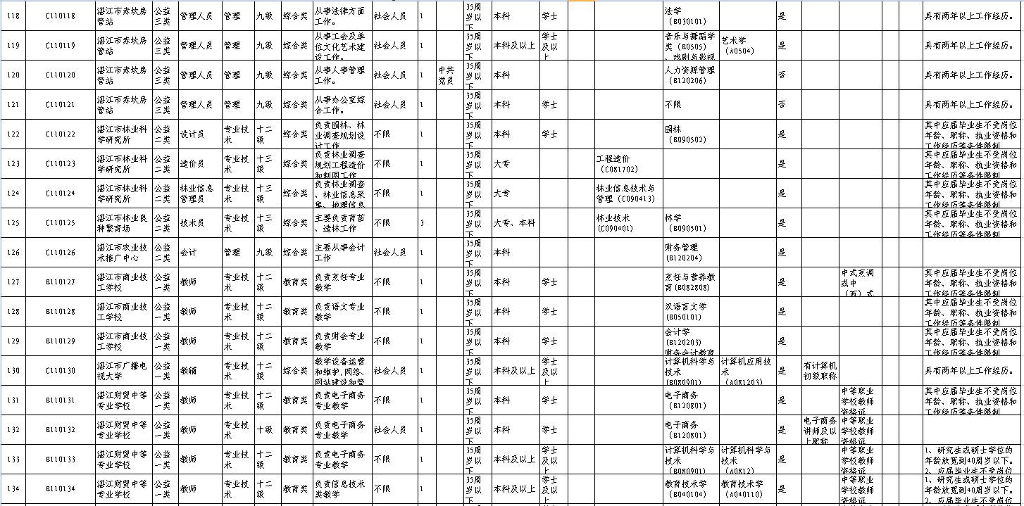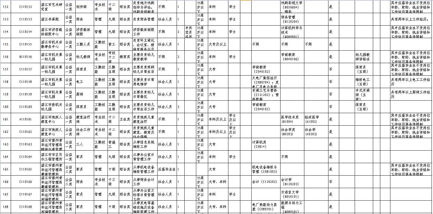 招聘单位、岗位、人数及其具体条件等详见《2017年湛江市市直事业单位公开招聘岗位表》(附件1,以下简称《岗位表》)。