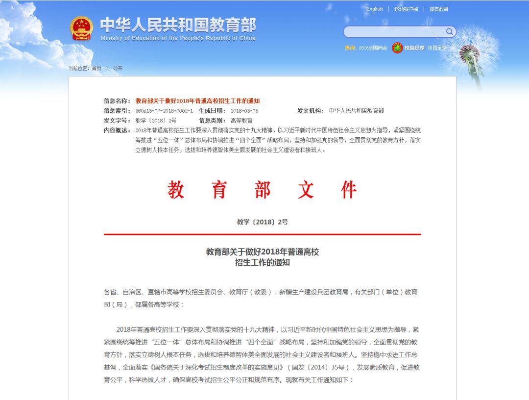 近日,教育部印发《关于做好2018年普通高校招生工作的通知》(点击左下角“阅读原文”查看),对今年普通高校招生工作进行全面部署。